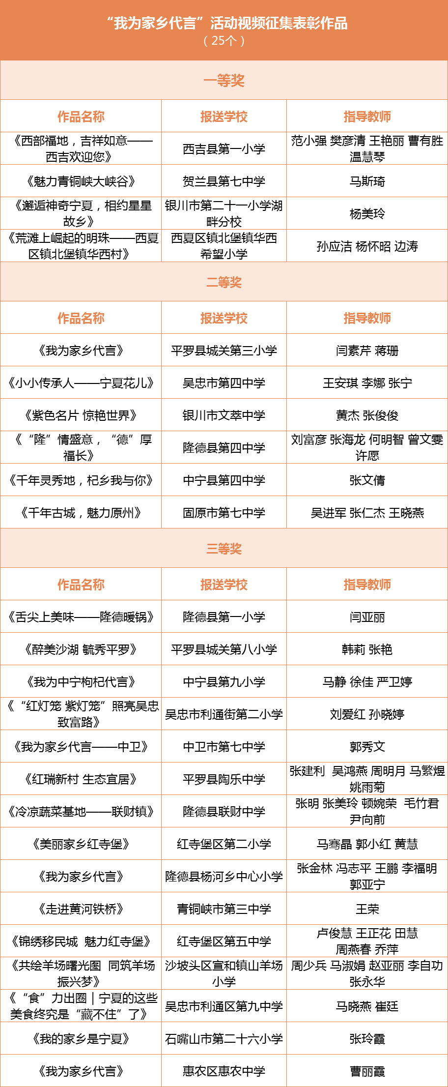 获奖作品名单