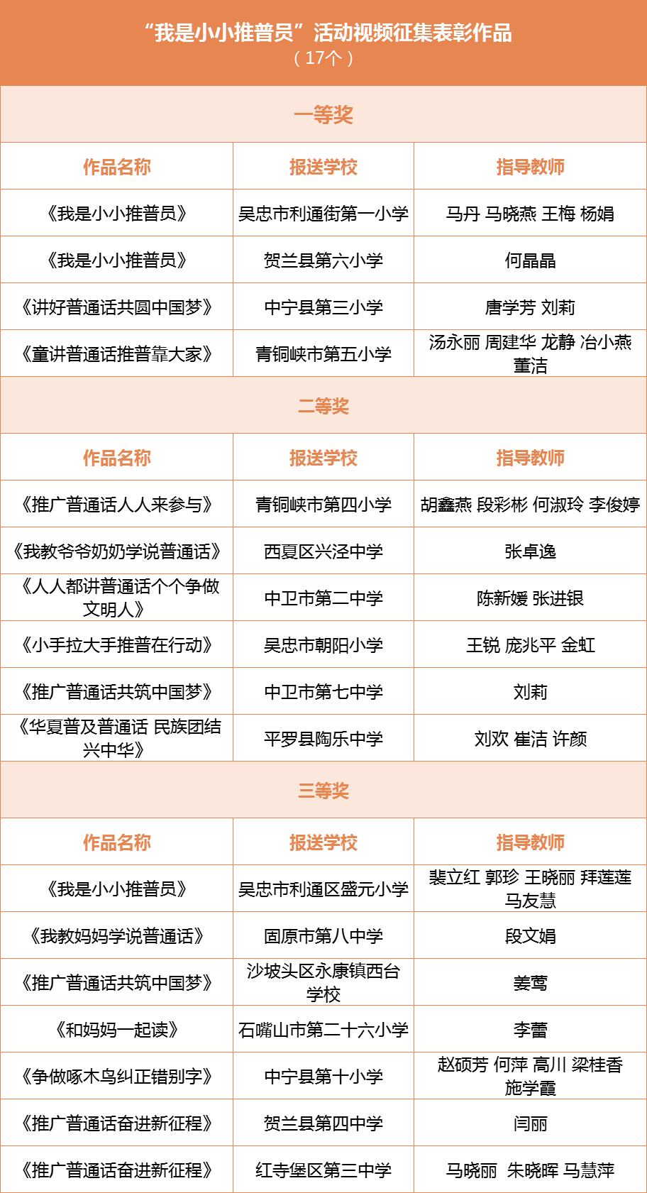 自治区教育厅近日公布2023年“经典润乡土”活动获奖名单,共评出8个一等奖,12个二等奖,22个三等奖,4个优秀组织单位,希望受表彰的创作者和单位珍惜荣誉、再接再厉,坚持以习近平新时代中国特色社会主义思想为指导,大力推进中华经典文化在各类学校尤其是乡村学校的浸润传播,推广规范使用国家通用语言文字,传承弘扬中华优秀语言文化,为更好服务乡村振兴战略实施作出新的更大贡献。